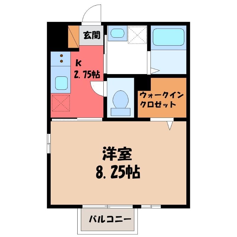 築年月 2003年10月  間取り 1K( K2.8畳/洋室8.2畳(*階) ) 専有面積 29.44m2