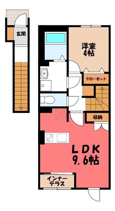 築年月 2026年  間取り 1LDK( LDK9.6畳/洋室4畳(*階) ) 専有面積 42.83m2