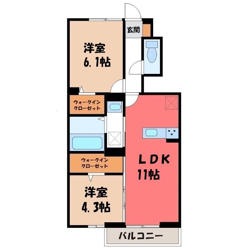 2LDK( LDK10.9畳/洋室6.1畳(*階)/洋室4.3畳(*階) ) |
