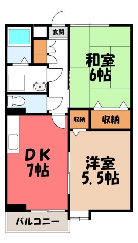 築年月 1997年8月  間取り 2DK( DK7畳/洋室5.5畳(*階)/和室6畳(*階) ) 専有面積 46.55m2