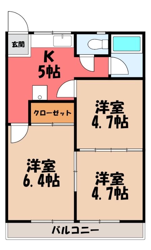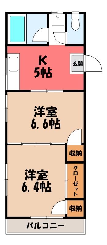 2DK( K5畳/洋室6.6畳(*階)/洋室6.4畳(*階) ) |