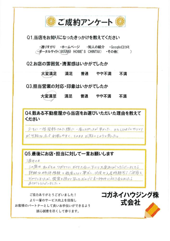 提案を続けて頂いたおかげで良い物件に巡り合えました!