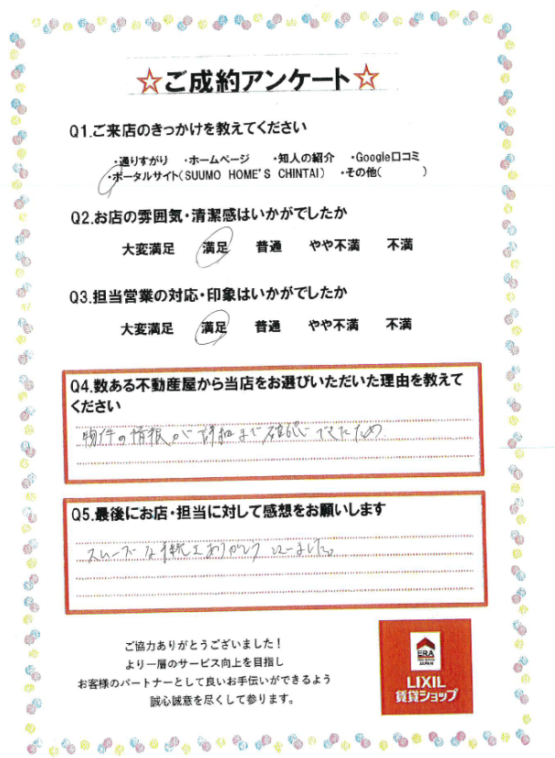 ご条件に合うお部屋をご契約いただけて、大変うれしく思います😊