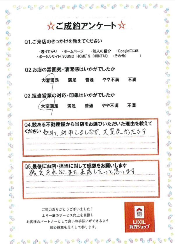 住み慣れた地域でご条件に合うお部屋をご契約いただけたとのこと、大変うれしく思います😊