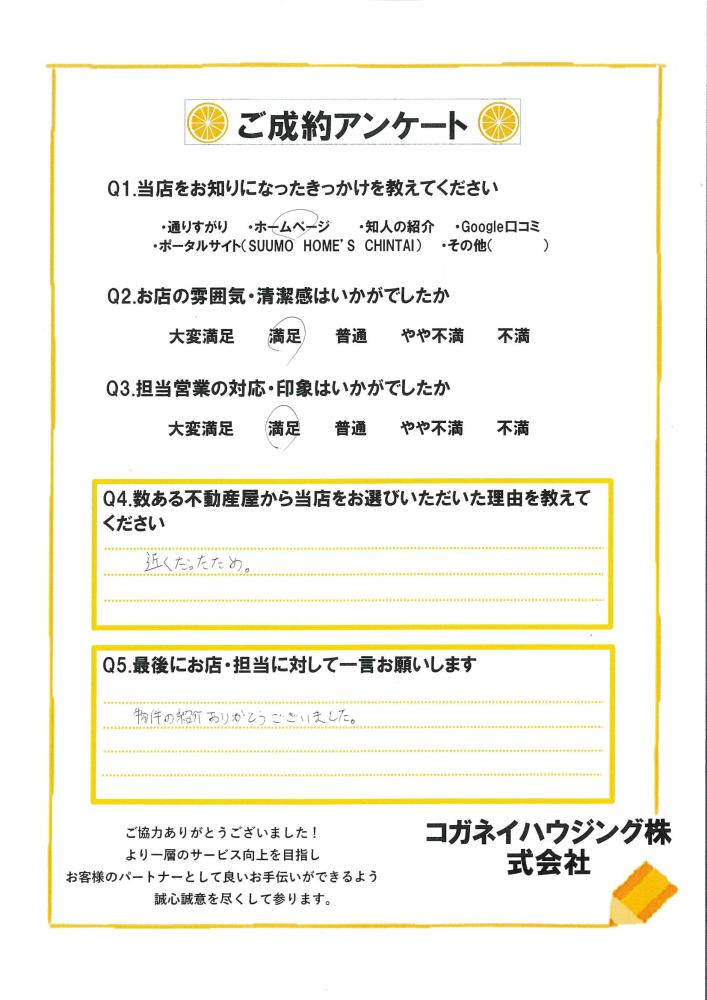 この度はコガネイハウジンング伊勢崎店をご利用いただき誠にありがとうございました! お二人の新生活がより良いものになることを弊社スタッフ一同お祈り申し上げます。 また何かありましたらいつでもお気軽にご連絡ください!