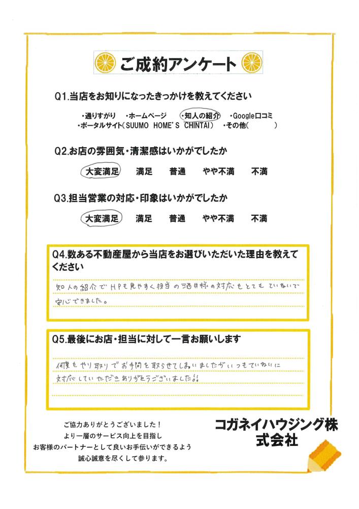いつもていねいに対応していただきありがとうございました!!(伊勢崎市 S様)