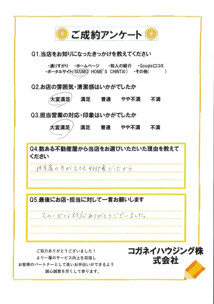 この度はコガネイハウジング伊勢崎店をご利用いただき誠にありがとうございました(^^) お客様のご協力のもと、スムーズに進めることができました! お二人のご新居での生活がより良いものになる事を心よりお祈り申し上げます!!