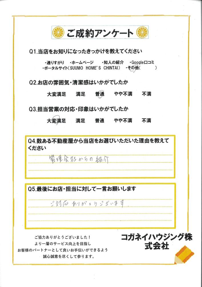 この度は、コガネイハウジング伊勢崎店のご利用をいただき誠にありがとうございました!! ご対面させていただく機会が少ない中、任せていただき本当にありがとうございます。 これからお引越し作業で大変かと思いますが、かわいい猫ちゃんとの新居生活が より良いものになることを心より祈っております(^O^) また何かございましたらお気軽にご相談くださいませ。 引き続き、どうぞよろしくお願いいたします!