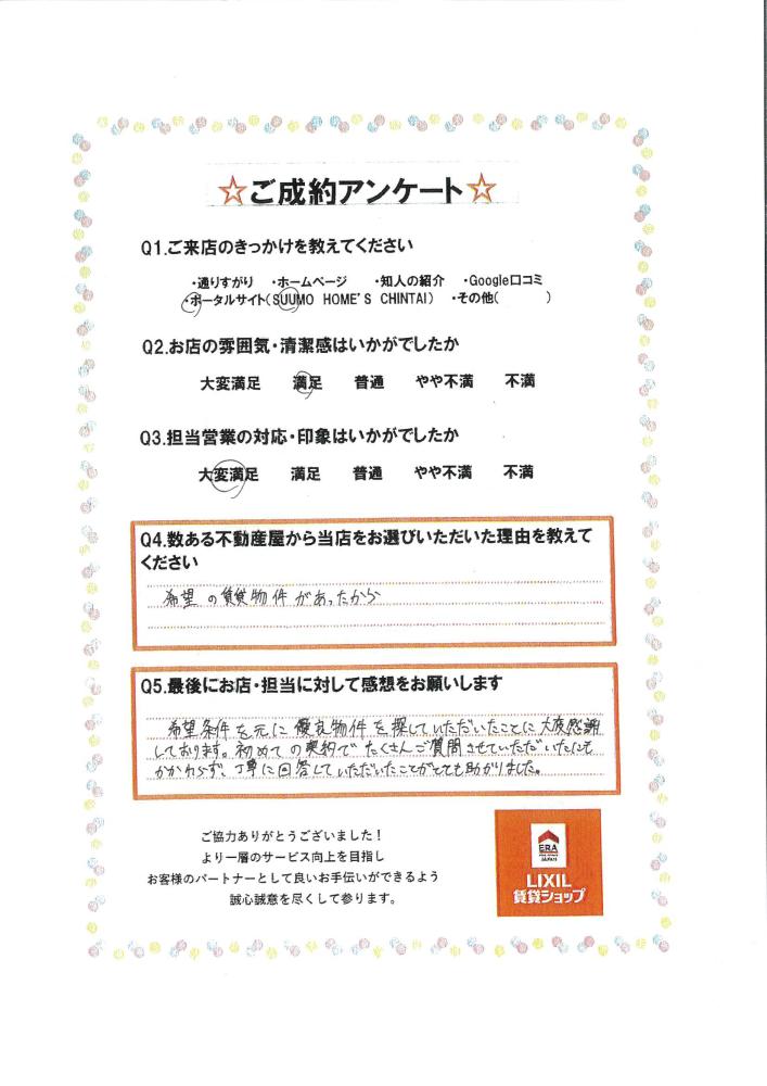希望条件を元に優良物件を探して頂いたことに大変感謝しております!!