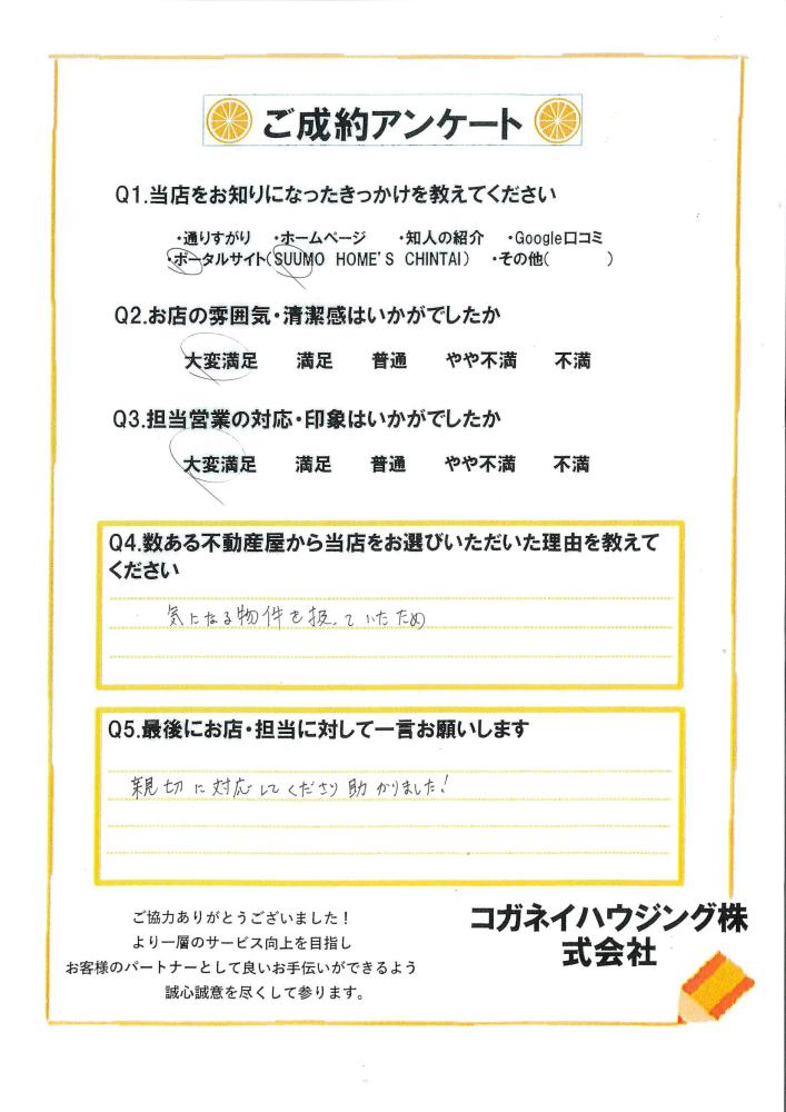 この度はコガネイハウジング伊勢崎店をご利用いただき誠にありがとうございます。 また、嬉しいお言葉ありがとうございます。 ご来店時からお2人の仲の良さが伺えまして、これからお2人でサポートし合い新生活を楽しんでください! ご不明点ありましたらまた、いつでもお声がけください! ありがとうございました。