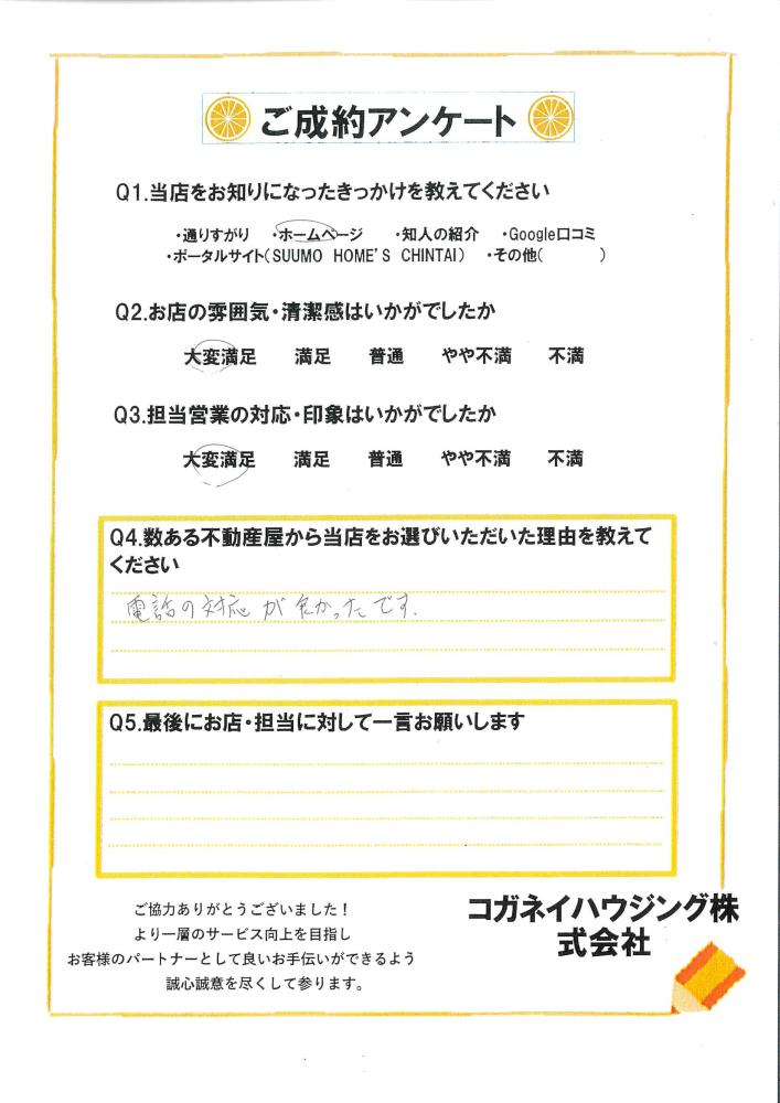 電話の対応が良かったです。(伊勢崎市 A様)