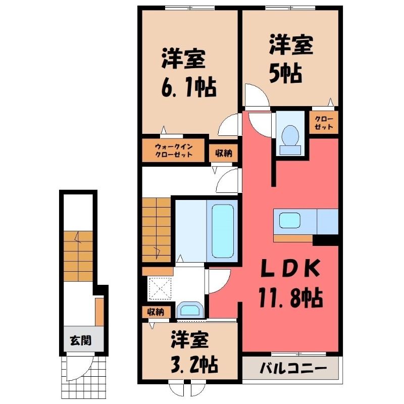 3LDK( LDK11.8畳/洋室6.1畳(*階)/洋室5畳(*階)/洋室3.2畳(*階) ) |